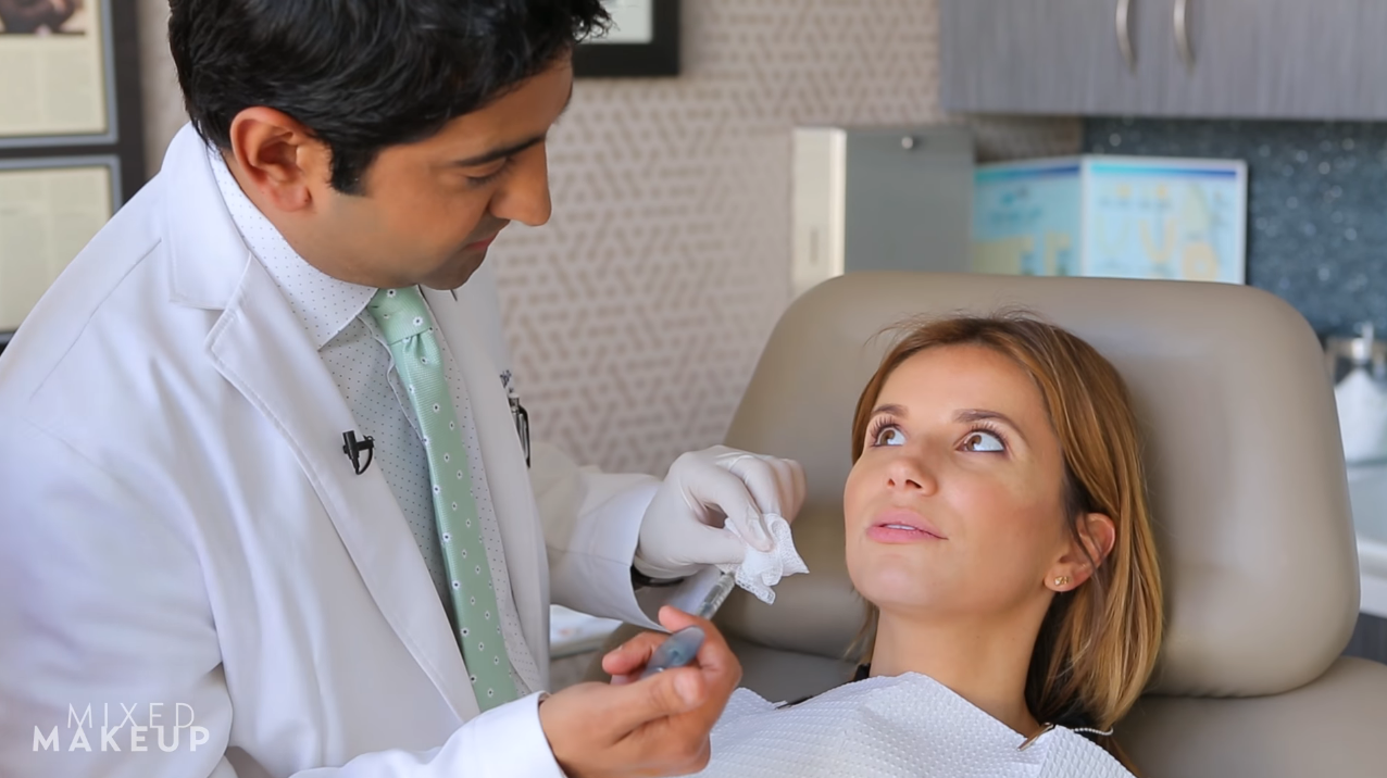 Rather than recommending surgical procedures (like rhinoplasty), Dr. Dhir suggests Botox to lift her eyelids, straighten her nose, and enhance her lips. Watch the video below to see how subtle injectables can offer natural-looking results.
