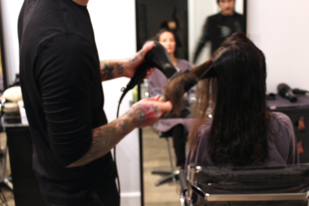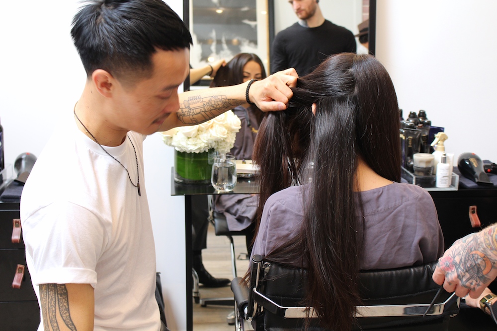 Next, into Tran's seat. I have to say, they don't waste any time here. And with good reason. Throughout the day, I get a glimpse of just how busy the salon can be. Ramirez and Tran alone see anywhere between 20 to 30 clients a day, and to manage the workload, they have a ton of assistants that arrive at 6:30am to prep before the boys get there at 7am. And every single one of them is efficient because they know they won't leave until each client is perfect, which means they sometimes find themselves at the salon until 2am. But back to Tran.
