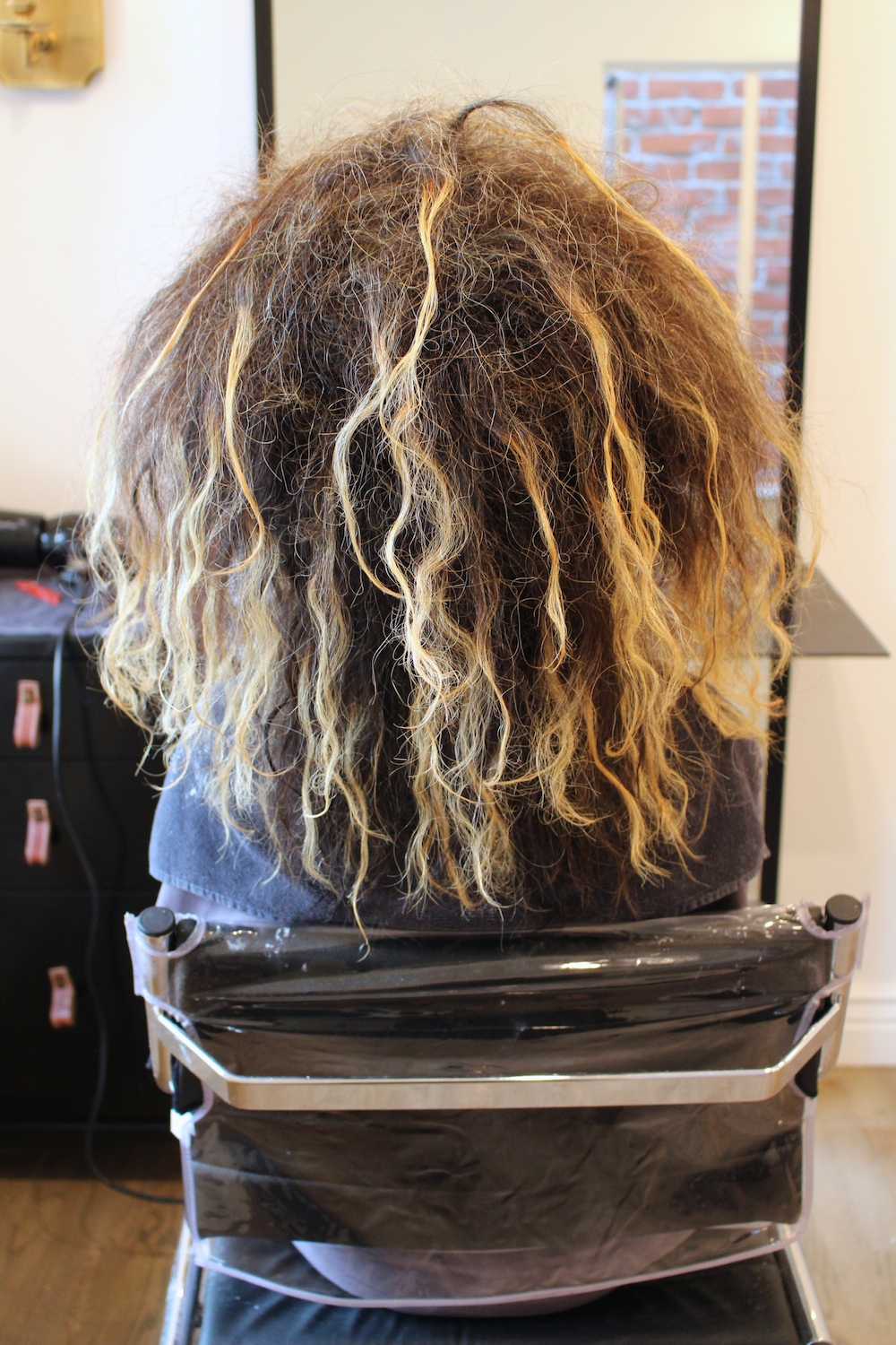 First, he put foils in my hair with bleach, and I was put under a hair dryer. That might not sound unique, but actually it was. That's because every few minutes, one of his assistants would come over and check my hair. If some spots seemed to lift quicker than others, he or she wiped it off. There was never a long stretch of time where I just sat there without being checked on. That's important because we all know bleach can be scary. Phase one is now complete and I have officially been here for about two hours.