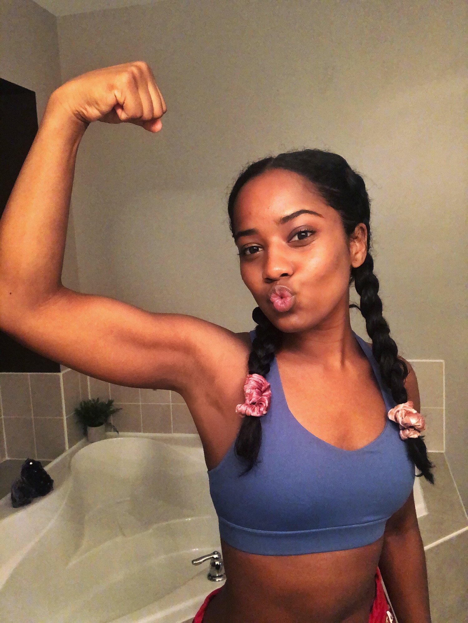 When she trains she likes to wear her hair in braids or twists because they are low maintenance and not distracting. On weekends, she will take them out for a bit more style. She says, “finding what works for you will take some trial and error but be patient.”